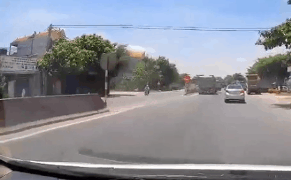 Pha vượt ẩu những tưởng sẽ khiến tài xế xe tải mất mạng nhưng may mắn là người này chỉ bị thương nhẹ.