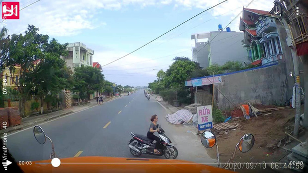 Theo hình ảnh mà camera ghi lại, xe ô tô đang di chuyển đúng làn đường. Bất ngờ, một xe máy từ làn ngược chiều rẽ đột ngột ngay trước mũi ô tô, lao nhanh vào một cửa hàng bên đường. Hành động của người phụ nữ khiến chủ xe ô tô phải phanh gấp, quặt tay lái để không đâm phải người phụ nữ.