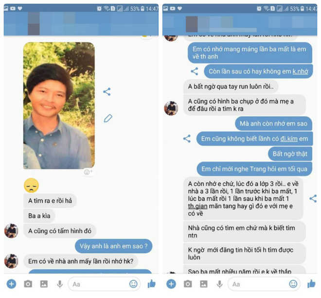 Lúc đó em thấy mừng và hồi hộp. Cảm giác rất lạ, em thấy vui vì gia đình vẫn tìm chứ không bỏ mình như suy nghĩ từ nhỏ đến giờ. Phần khác em cũng lo là tìm nhầm người lắm.