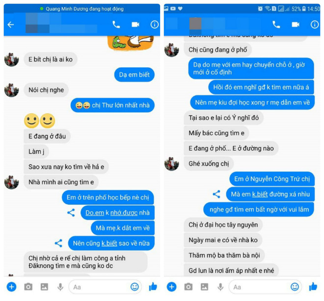 Một cuộc hội thoại ngắn tự nhiên như chưa hề có cuộc chia ly nào cả. Sau đó, hai cô chị gái cũng vào nhắn tin nhận em gái thất lạc.