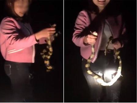 Mới đây, đoạn clip được đăng tải lên Facebook ghi lại sự việc 1 cô gái trẻ dùng tay không bắt rắn cạp nong, lại còn đưa cho bạn bè... sờ thử khiến nhiều người thót tim.