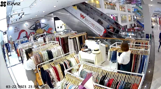 Theo đó, trong clip, một phụ nữ mặc áo trắng, chân váy ngắn, vào cửa hàng quần áo tại 1 Trung tâm thương mại để giả vờ mua quần áo. Khi thấy chủ tiệm đang loay hoay tư vấn món đồ cho 1 khách khác, cô gái này đã nhanh chóng quẹo lựa chiếc áo mình yêu thích rồi dùng 2 chiếc túi màu vàng mình mang theo để "ngụy trang".