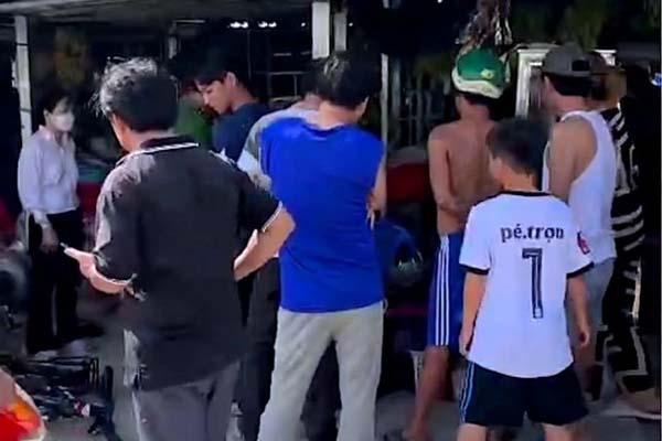Rất đông người dân xung quanh chứng kiến đã tới can ngăn nhưng người đàn ông này vẫn không dừng tay.