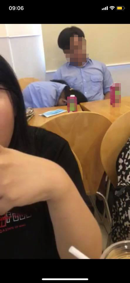 Theo đó, gây xôn xao mạng xã hội sáng nay là hình ảnh một đôi bạn trẻ thản nhiên "hành sự" trước sự chứng kiến của nhiều người. Hình ảnh ghi lại, đôi trai gái ngồi cuối hội trường, nữ chính đã có những hành động khiến người xem đỏ mặt. Đặc biệt, nam chính cũng vô tư "phối hợp" với bạn gái.