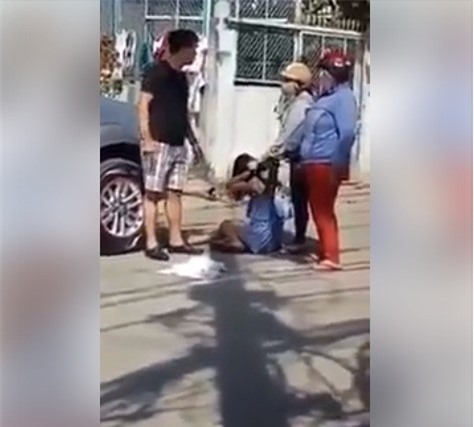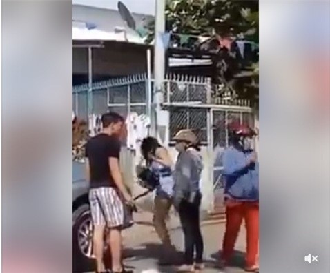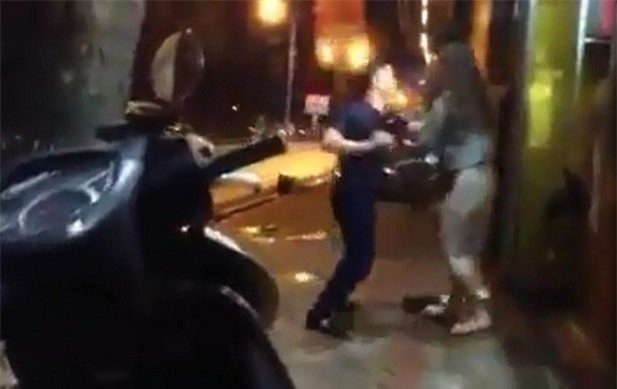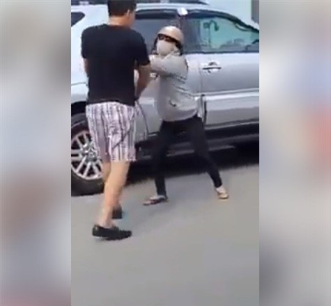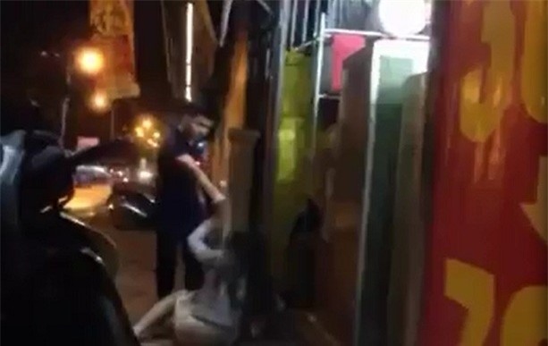 Trong khi người vợ đứng dưới đường kéo cô bồ, ông chồng đã bất ngờ nhấn ga cho xe chạy, khiến cô vợ phải bám chặt lấy xe, rất may là không có tai nạn xảy ra. Chưa dừng lại, sau khi đi được một đoạn và dừng xuống xe, người chồng đã dồn vợ lên vỉa hè, vừa tát vừa chửi mắng, rồi đẩy mạnh cô vợ vào cửa sắt của một nhà gần đó.