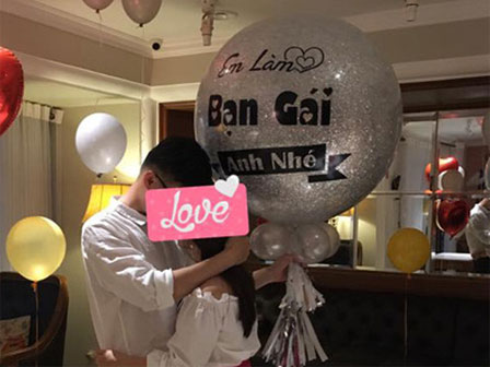 Tấm thiệp bày tỏ tình cảm và quả bóng bay mang dòng chữ "Làm bạn gái anh nhé" khiến bất cứ cô nàng nào cũng phải xiêu lòng ngay từ giây phút đầu tiên