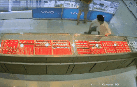 Thanh niên ăn mặc chỉnh tề nhưng thích làm trò đồi bại, giả vờ xem tiệm vàng để nhòm váy cô gái trẻ lần 1.