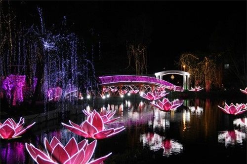 Cổng chào được thiết kế nổi trên mặt hồ với cây cầu vắt ngang qua để đến sân khấu chính