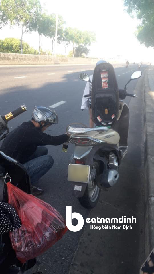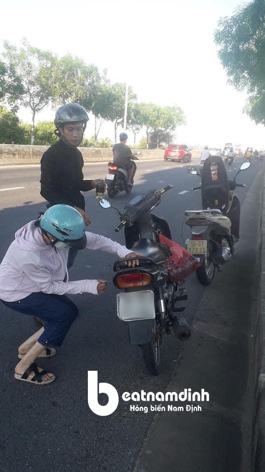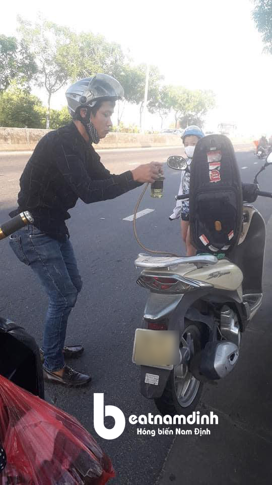 Chàng trai đã nhanh trí dùng một chiếc ống hút và chai nhựa để hút xăng từ xe của mình rồi đổ sang xe của 2 mẹ con nhà kia. Dù lượng xăng đổ sang không nhiều nhưng anh cũng đã giúp đỡ họ không phải dắt bộ thêm 2km để đến trạm xăng.