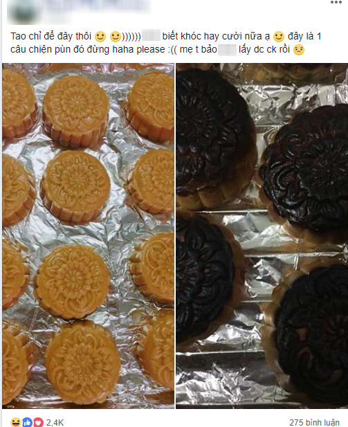 Kèm với đôi câu than thở là hai tấm hình được cho là trước và sau khi vào lò nướng. Bức hình một thơm ngon, nhìn muốn ăn ngay, đặc biệt chúng khiến người làm “nở mày nở mặt”.