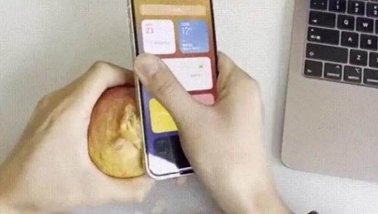 iPhone 12 có thiết kế phần viền thân khá giống với iPhone đời 4, 5 trước đây nhưng mỏng hơn và vuông vức hơn, có lẽ vì vậy mà phần cạnh sắc tới mức gọt được táo. Dân mạng đã kịp có nhiều comment trái khoáy về câu chuyện này: