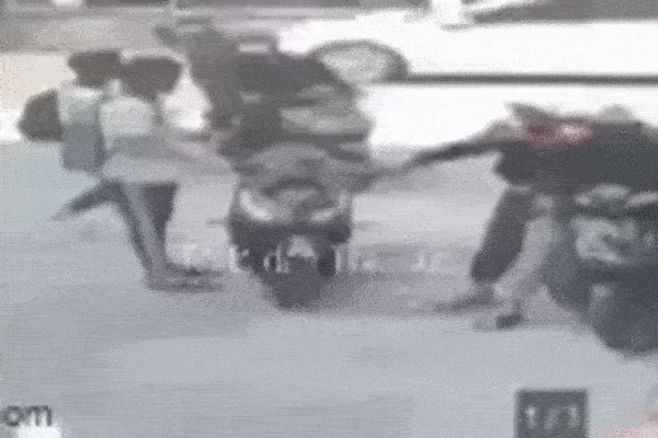 Khoảnh khắc 2 cô gái chạy xe máy lao thẳng vào cửa hàng bên đường