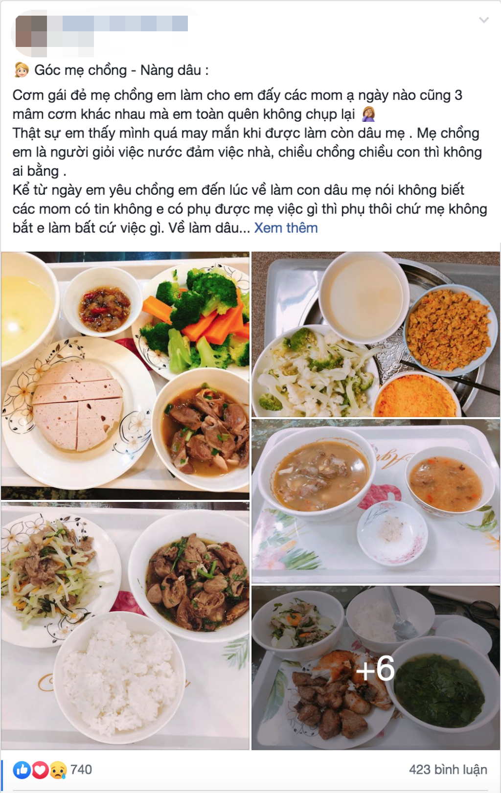 Bà mẹ trẻ cho biết, trong thời gian cô ở cữ, ngày nào mẹ chồng cũng nấu ba mâm cơm khác nhau để con dâu ăn khỏi ngán. Những mâm cơm được bày biện cẩn thận, sạch sẽ cũng đủ để thấy sự quan tâm của mẹ chồng chị P.L.P dành cho con dâu.