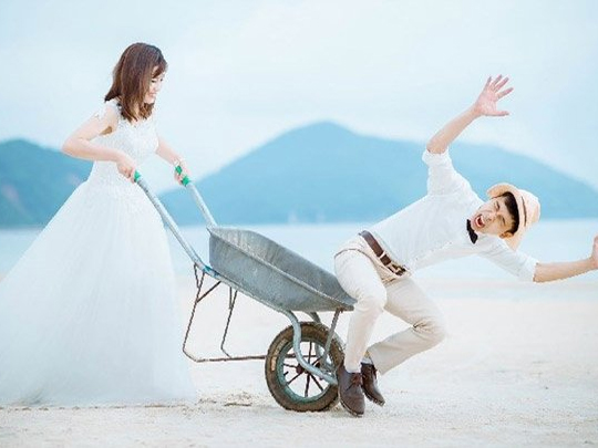 Vừa qua, cư dân mạng truyền tay nhau một clip hài hước về buổi đón dâu của một cặp đôi. Trong đó, chú rể đến đón dâu bằng... xe đạp. Cô dâu vui vẻ ngồi lên chiếc xe mini màu vàng. Xe đạp để đón dâu cũng được trang trí bằng dải lá nhựa, giỏ đằng trước đựng đầy hoa hồng và bóng bay hình trái tim. Yên xe đằng sau còn cẩn thận lót một lớp dây nhựa để vừa trang trí, vừa êm... mông.