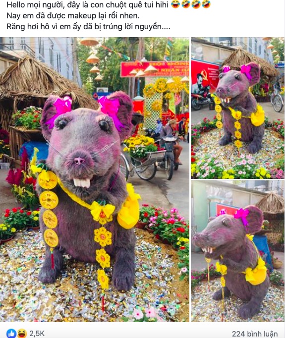Sau khi hình ảnh chú chuột linh vật mừng năm mới - năm Canh Tý thuộc địa phận huyện Củ Chi khiến cư dân mạng “dở khóc dở cười" vì nhìn quá giống chuột cống được đăng tải trên mạng xã hội thì mới đây, chú chuột này đã chính thực được... make-up lại.