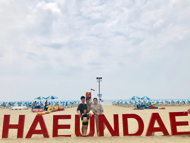 Gia đình nhỏ này đang có kỳ nghỉ vui vẻ tại bãi biển Haeundae.