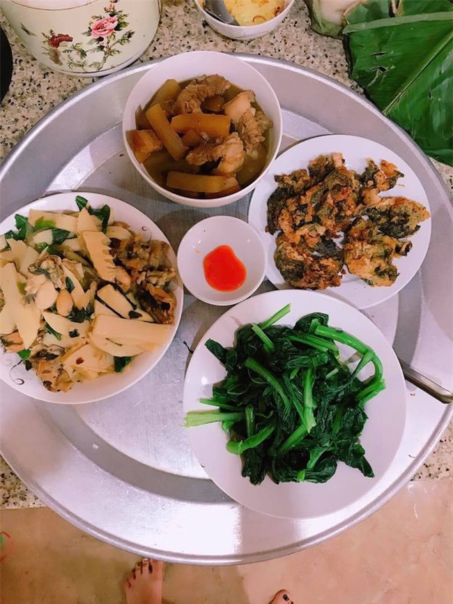 Mâm cơm 4 người ăn nhà mẹ L.X nhìn phong phú hơn rất nhiều mà mức giá bỏ ra chắc cũng không đến nỗi quá đắt.