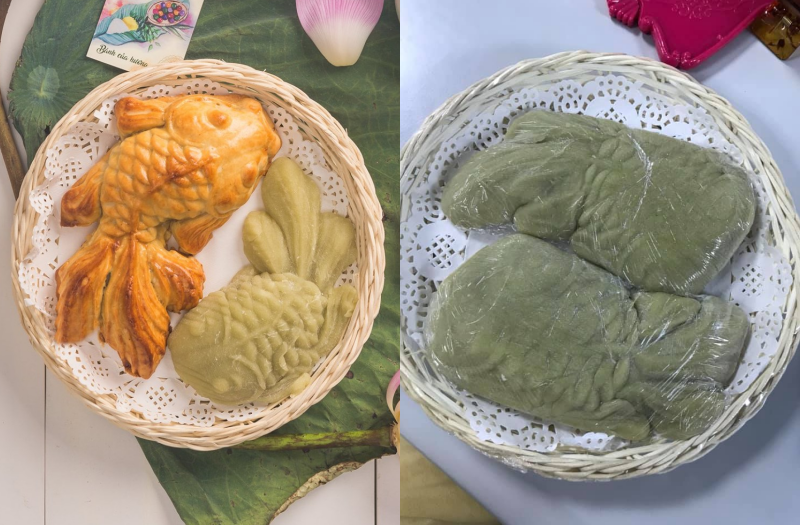 Hóa ra chị Q.A.P đặt mua 1 cặp bánh dẻo cốm hình cá chép nhưng đến khi nhận bánh thì chẳng còn giống cá chép như minh họa nữa mà thay vào đó là hình dạng khá kì dị. Quả thực, nếu không được giới thiệu thì khó ai có thể hình dung được đó là 2 chiếc bánh hình cá chép. Thế nên bà mẹ trẻ cũng cho biết dù chất lượng bánh miễn chê nhưng hình thức thế này thì khó mà chấp nhận được.
