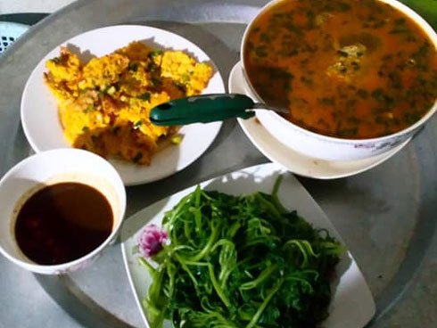 - Ngon quá! Đợt sinh chị cũng chỉ ao ước được 1 bữa thế này mà cả tháng trời ròng rã thịt lợn rang và canh rau ngót.
