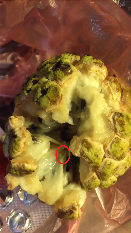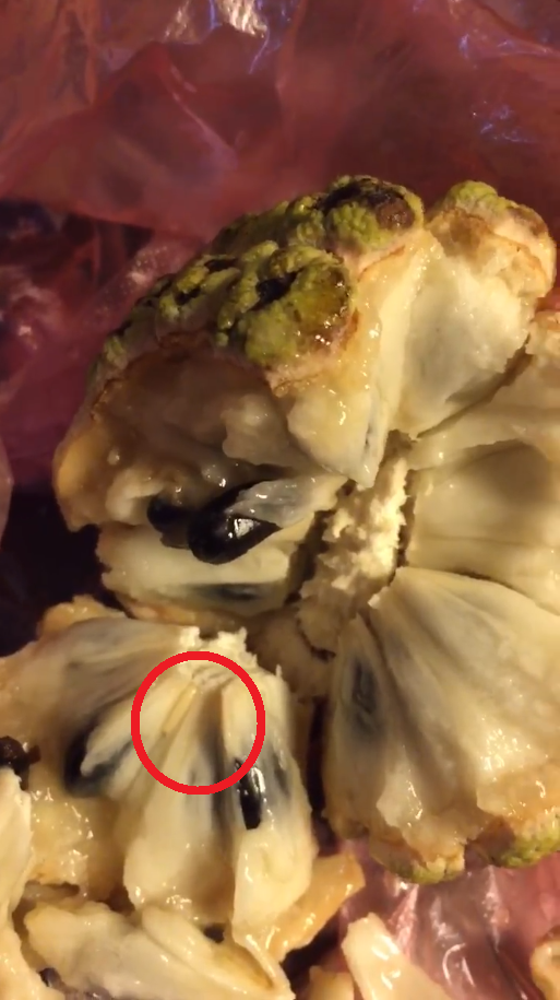 Các mẹ thấy đấy, nhìn thấy giòi còn bảo gọt đi rồi ăn, thì sao mình yên tâm nổi. Chết mất thôi! Mình nghĩ tất nhiên không phải 100% đều bị nhưng các mom nên cẩn thận. Giòi nó trắng toát, giống màu quả na, nhất là để tủ lạnh nó sẽ nằm im luôn bất động. Clip lúc mình quay là để ở túi rác 1 lúc rồi và khi đó tụi giòi nó bò sâu vào bên trong rồi á."