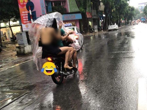Những bức ảnh chụp cảnh hai nam thanh niên có cách đi xe máy chẳng giống ai. Theo đó, họ không ngồi yên trên xe mà lại ngả người theo sau, chẳng rõ để làm gì.