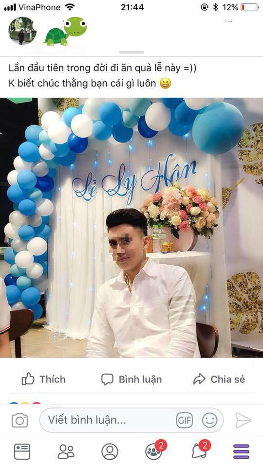 “Tao hỏi ngu phát đi đám này có phải đi phong bì nữa không hay đòi phong bì hồi lúc trước đi đám cưới nó? Nhưng theo tao thì những đứa nào đi lễ ly hôn này sẽ được trả lại phong bì trước đây đã mừng cho vợ chồng thằng kia. Lễ ly hôn mà vuihơn lễ cưới dại gì mà không đi nhỉ”, anh Thọ Hưởng chia sẻ.