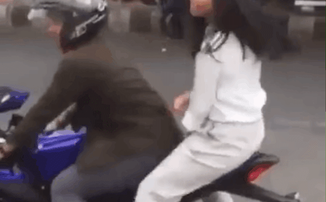 Ngồi ngất ngưởng trên xe phân khối lớn, còn hôn gió ra oai, cô gái "muối mặt" vì pha tăng ga của người yêu