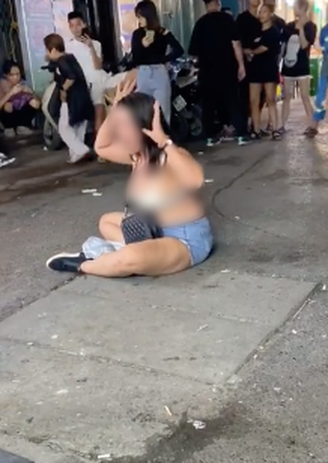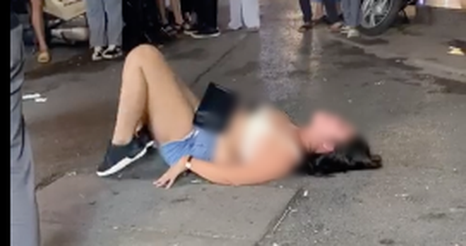 Sau một hồi to tiếng trước cửa quán bar bất thành, người phụ nữ liền lột đồ nằm luôn ngoài đường bất chấp nhiều người xung quanh chứng kiến thậm chí là dùng điện thoại quay clip lại.