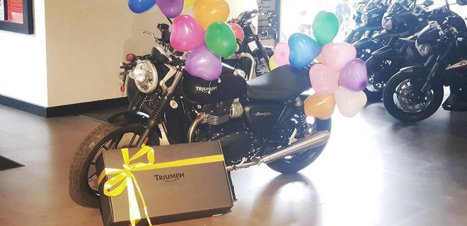 Hôm qua, đoạn clip ngắn ghi lại cảnh một người vợ mang khoản tiền lớn đi mua chiếc xe motor Triumph giá trị tặng sinh nhật chồng gây chú ý. Món quà được đưa đến ngay trong bữa tiệc sinh nhật và nhận được nhiều lời chúc mừng từ tất cả mọi người.