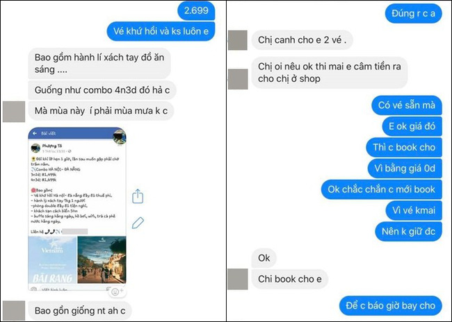 Vì là hàng xóm gần nhà nên Phượng cũng tin tưởng bỏ tiền túi ra trả trước để giữ được 2 vé trên chuyến bay ngày 12-18/9. Hỏi đi hỏi lại khách vẫn chốt đúng ngày, ngờ đâu khi thanh toán xong, Phượng bị khách "xù" luôn, còn dọa sẽ "cắt lộc làm ăn" vì dám book lịch dương chứ không phải lịch âm (!)