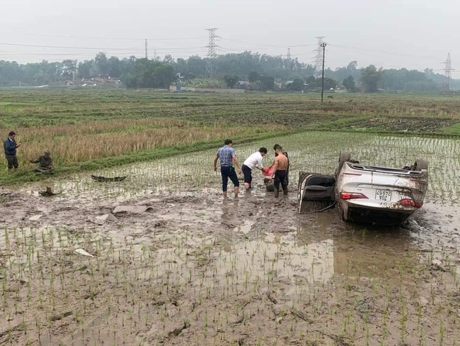 Được biết, nguyên nhân sự việc này là do chiếc xe ô tô con đã tránh xe bán tải và 1 người phụ nữ đi bộ. Do di chuyển với tốc độ cao nên chiếc xe đã lao thẳng xuống ruộng, "cày" nát thửa ruộng rồi lật ngửa.
