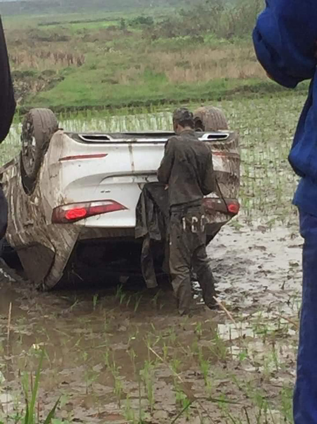 Mới đây, hình ảnh 1 chiếc xe ô tô lật ngửa dưới ruộng khiến ai nấy tò mò. Theo hình ảnh đăng tải, chiếc xe ô tô màu trắng lao thắng xuống ruộng, lật ngửa, vài người đàn ông trong xe may mắn thoát được ra ngoài, bò lồm cồm dưới ruộng, quần áo lấm lem bùn đất.