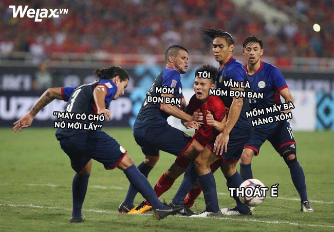 Trong trận đấu tối qua, Quang Hải là cầu thủ bị kèm ác liệt nhất. Chẳng những thế, chàng cầu thủ còn bị đội bạn chơi xấu kéo áo phạm lỗi, thế nhưng Quang Hải vẫn là người mở tỉ số cho Việt Nam ở phút 83. Những tình huồng éo le của Quang Hải cũng được CĐM chăm sóc kĩ càng và biến thành bộ meme cực sống động.