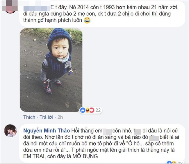 Ngay sau đó là hàng loạt bình luận kèm các hình ảnh minh họa rằng “không chỉ riêng mình bạn có em cách xa tuổi đâu, mà còn rất, rất nhiều người giống như bạn”.