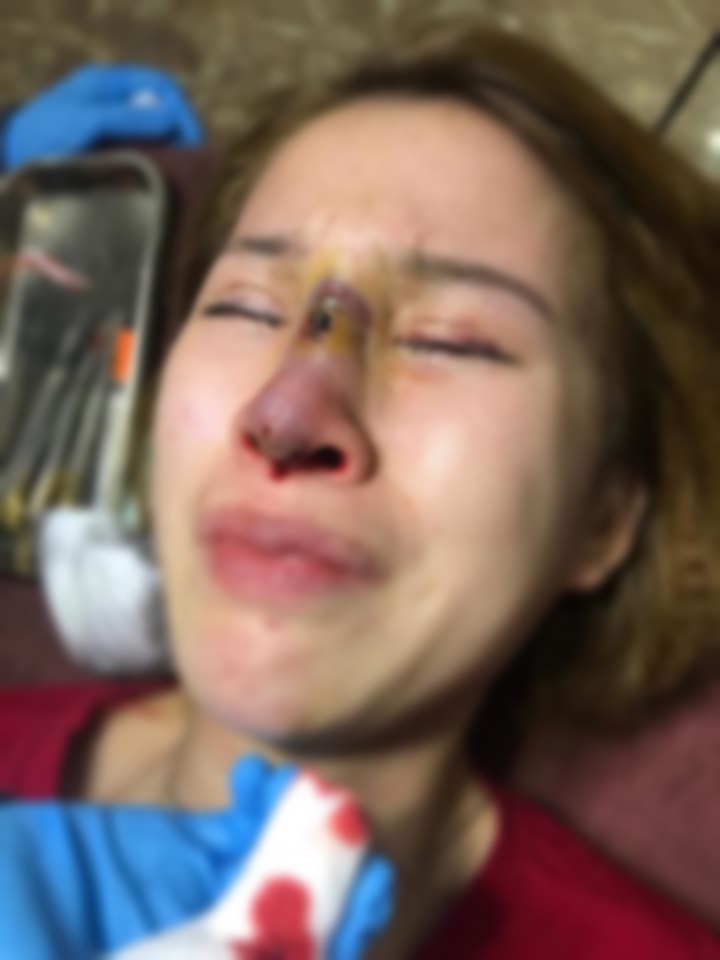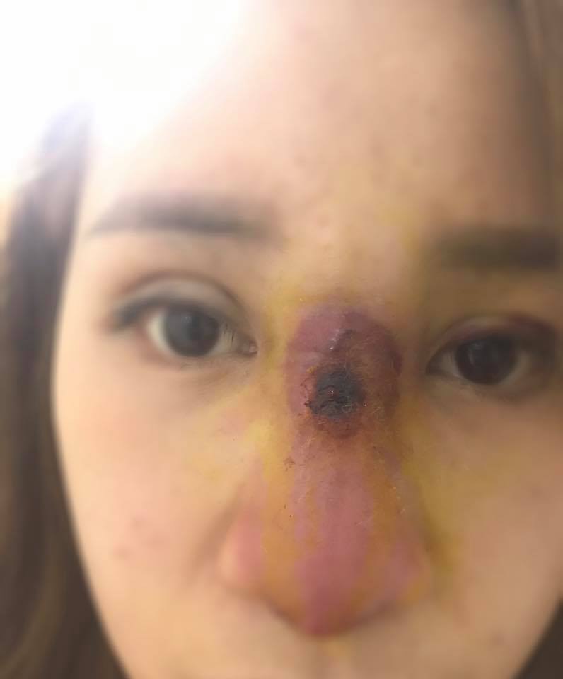 Nâng mũi với giá 10 triệu, cô gái trẻ tá hỏa vì đẹp đâu chẳng thấy lại nhận kết đắng khi chiếc mũi bị tụ máu tím bầm, vết rạch viêm tấy nhìn vô cùng khủng khiếp.