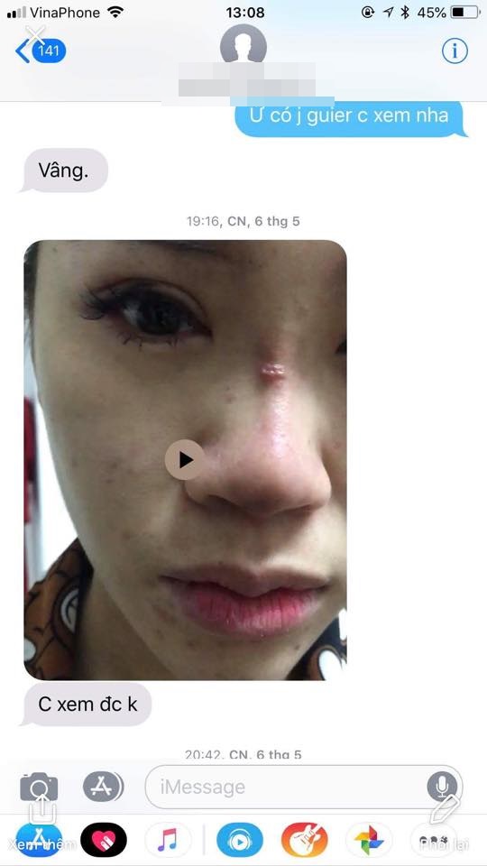 H.B chia sẻ kèm dòng trạng thái: "Đây là mũi của e làm đã bị hỏng. Thấy mọi người bảo em hiền quá không bóc phốt nên hôm nay em bóc cho mọi người tránh Spa này ra ạ. Có rất nhiều người bị hỏng nhưng không dám bóc phốt".