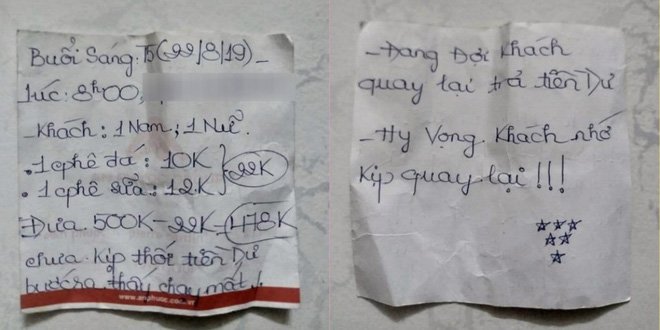 Shipper quê Tây Ninh lý giải: "Chị ấy bảo ghi lại đề phòng mình lâu quay lại thì vẫn còn nhớ rõ số tiền, vì mỗi ngày khách ra vào rất đông. Với lại nhiều khi chị đi vắng, nhân viên của quán ở nhà vẫn đọc được để biết mà trả lại tiền cho khách"