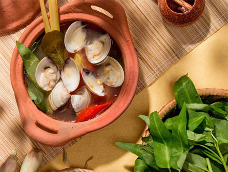 Bát canh ngao nấu chua hấp dẫn có cả vỏ được cô gái đính kèm. (Ảnh minh họa)