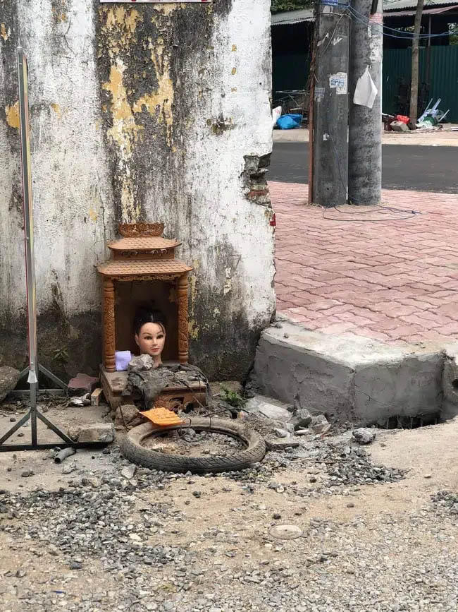 Một ban thờ bên đường với 1 chiếc đầu manocanh bên trong đã khiến bất kì ai đi ngang qua đây cũng khó mà tránh khỏi hãi hùng đến rụng rời tay chân.