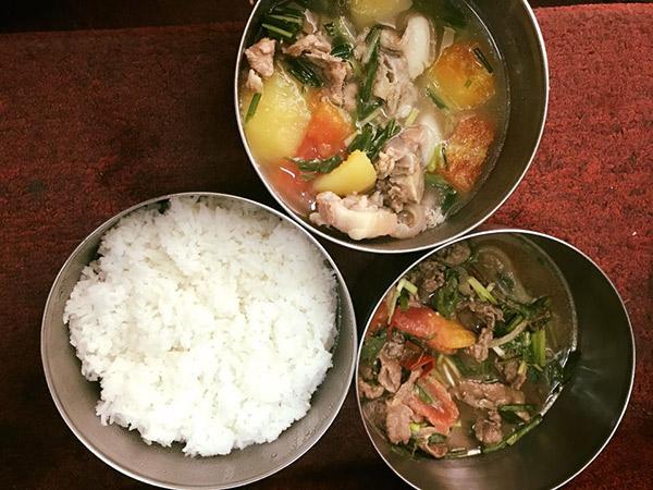 Những suất cơm đầy đủ dinh dưỡng, đầy đặn và sạch sẽ.