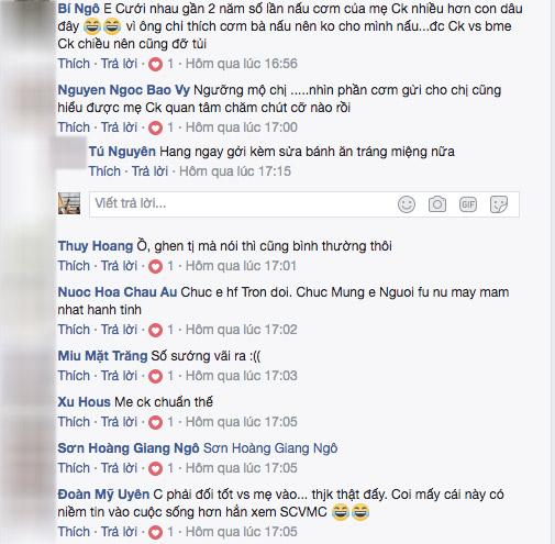 Rất nhiều người bất ngờ và liên tục gửi lời chúc mừng tới cô nàng may mắn khi biết những hộp cơm trưa đó do chính mẹ chồng của Tú Nguyên nấu và hàng ngày gửi xe ôm mang đến tận công ty cho con dâu.