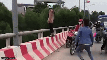 Nam thanh niên lao tới, kéo người phụ nữ đang đứng trên thành cầu xuống