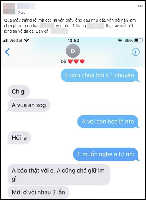 Đó cũng là câu chuyện của cô gái trẻ tên H.C, mới đây H.C đã có chia sẻ những cảm xúc vụn vỡ của mình trên một nhóm kín dành cho hội chị em. Cụ thể, bài đăng có nội dung như sau: