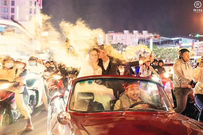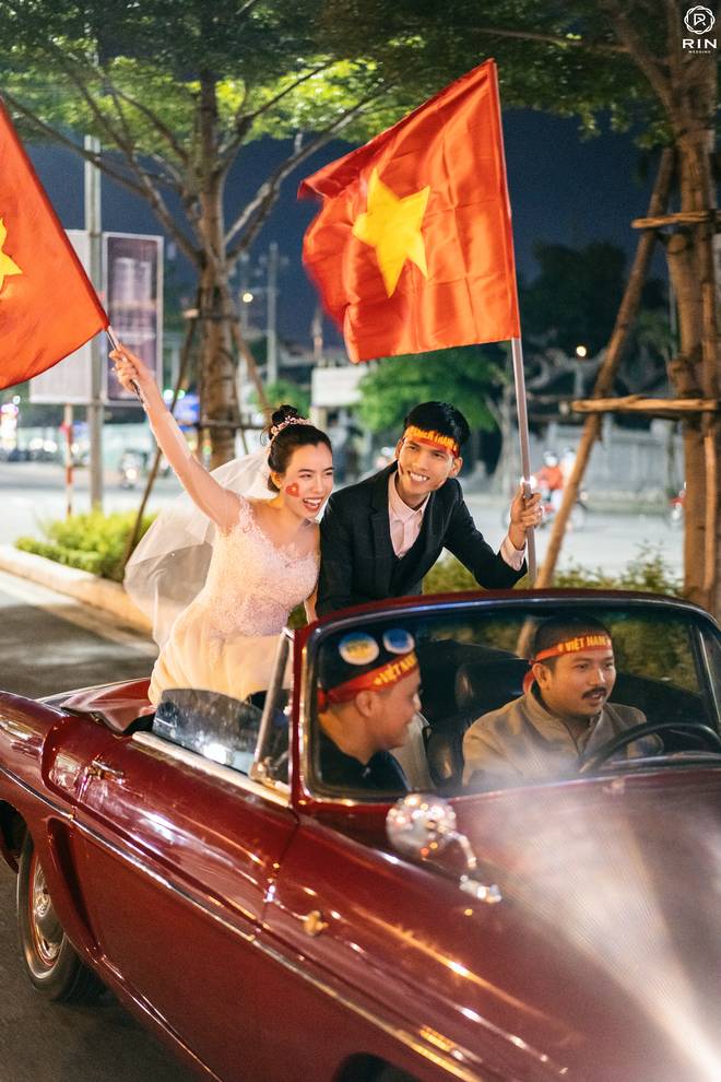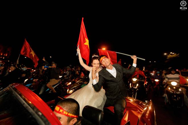 Bộ ảnh cưới được thực hiện đúng vào thời khắc lịch sử của bóng đá nước nhà. Đây chắc chắn là kỷ niệm vô cùng đáng nhớ đối với 2 nhân vật chính.