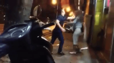 Sau một hồi giằng co không có kết quả, người chồng bất ngờ phóng xe bỏ đi, khiến người vợ đánh đu ở theo bên cửa xe. Chạy được một đoạn, chiếc ô tô dừng lại, người đàn ông xuống xe, kéo người vợ lên vỉa hè, chửi bới đánh đập không thương tiếc.
