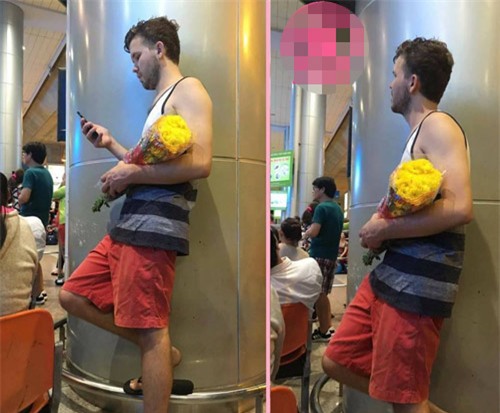 Anh chàng Tây gây sốt với hình ảnh cầm hoa cúc vàng chờ người yêu.