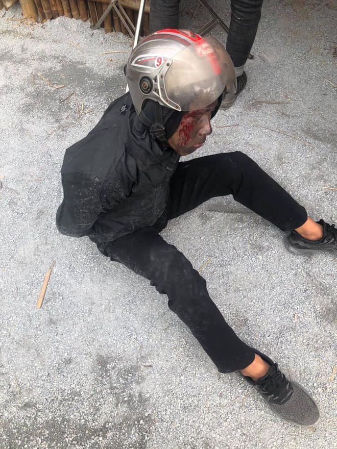Đầu tiên là hình ảnh người đàn ông mặc đồ đen, mặt "hóa trang" đen nhẻm bị trói tay, đánh chảy máu mặt vì nghi là có liên quan đến nhóm đối tượng cầm "xúc xích và đầu gà" đi xin tiền khắp nơi. Tuy nhiên, những hình ảnh trên cũng khiến dân mạng "bán tín bán nghi" bởi một số đặc điểm không trùng khớp với đối tượng đi xin tiền.