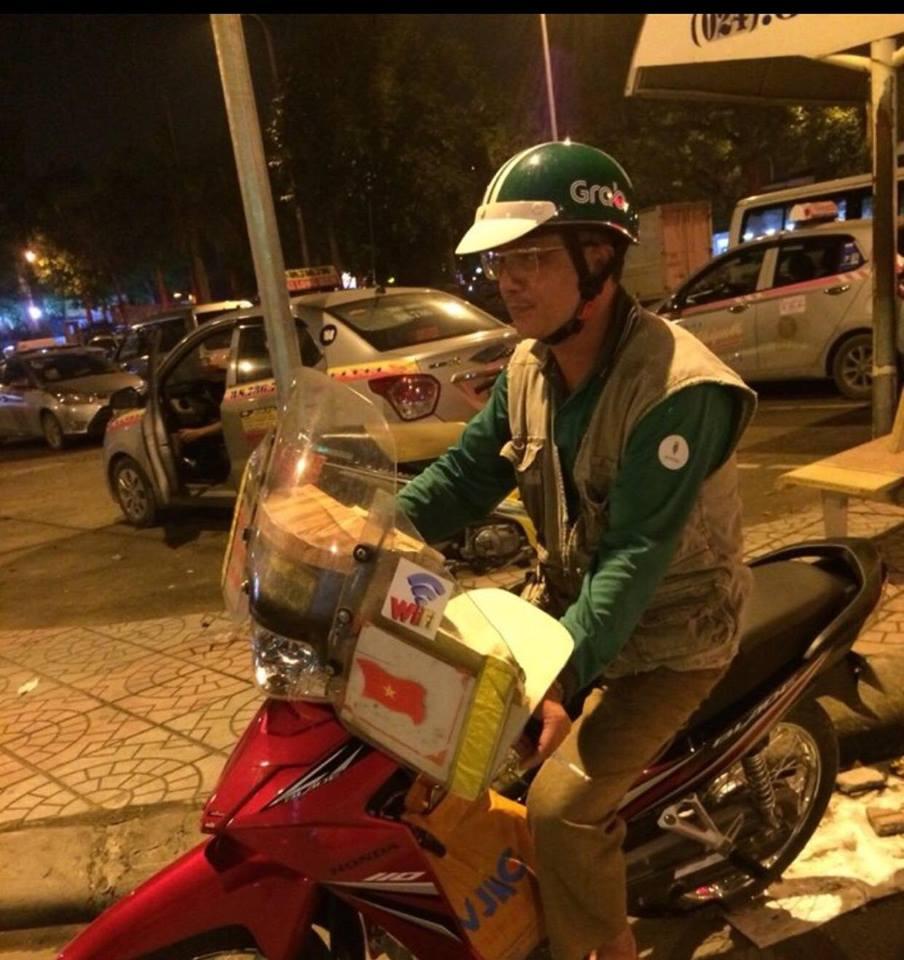 "Đây là bố mình, bố mình hiện là tài xế Grab Bike. Từ trước đến giờ, dù làm bất cứ nghề gì việc gì, bố lúc nào cũng thích tự bản thân mày mò, sáng tạo, và đó là lý do bố có 1 chiếc xe đặc biệt thế này.
