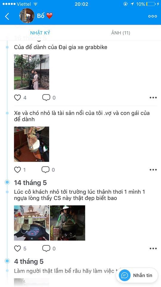 Từ lúc bắt đầu làm Grab, mình thấy bố vui hơn. Bố hay kể về khách, về những cuốc xe mỗi ngày, về việc thi thoảng lại có người xin chụp ảnh xe bố, có hôm bố bảo cả các anh em Grab nước ngoài cũng share ảnh xe bố về để Grab nước họ 'học tập'.