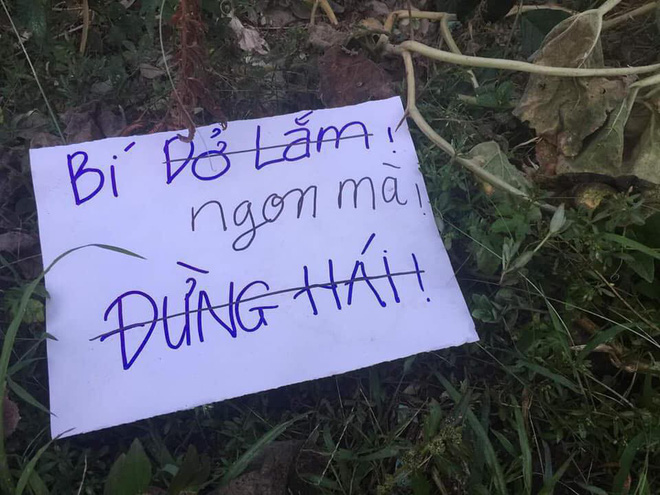 Cuối cùng, quả bí cũng đã được ai đó hái mất. Như để xát thêm vào nỗi đau của người trồng, tấm biển cảnh báo trước đó đã bị sửa lại nội dung nghe rất có ý khiêu khích: "Ngon mà".
